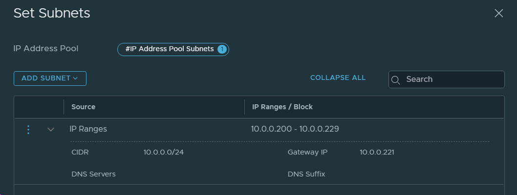 3. Created an IP Pool for Remote Tunnel Endpoints in the Local NSX-T Manager in VCF instance 1 (BGO).