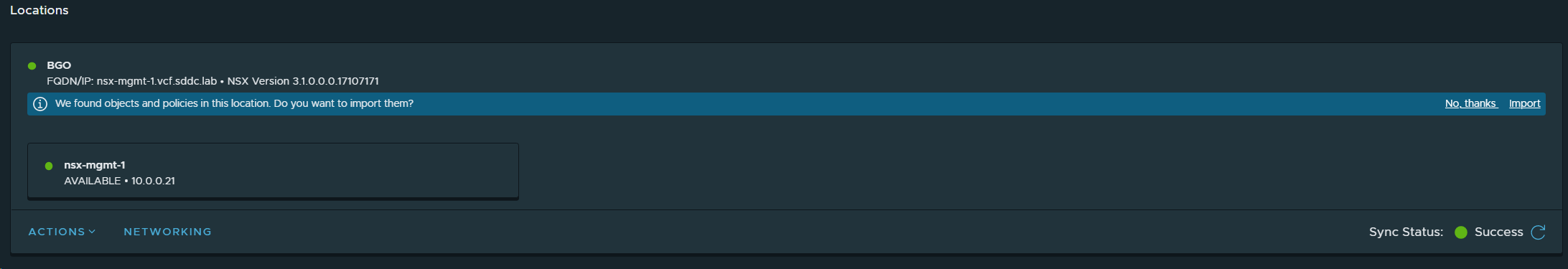 8. Imported the NSX-T Local Manager configurations for VCF Instance 1 (BGO) to the NSX-T Global Manager.