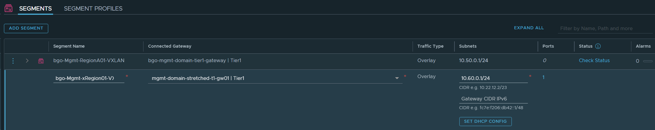 10. Connected the existing Cross-Region Segment to the stretched Tier-1 Gateway.