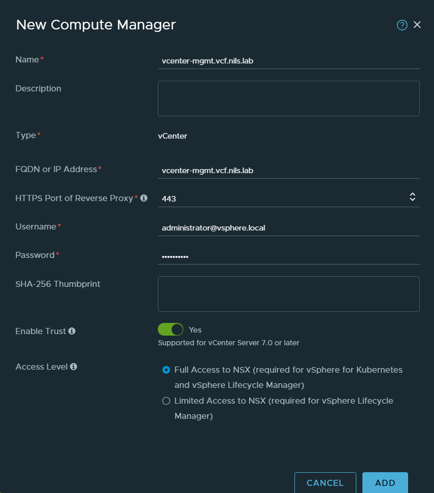echo -n | openssl s_client -connect nsx-mgmt-1.vcf.nils.lab:443 2>/dev/null | openssl x509 -noout -fingerprint -sha256