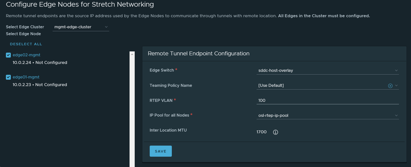 29. Added VCF Instance 2 (OSL) as a Location in the stretched Tier-1 Gateway (mgmt-domain-stretched-t1-gw01).