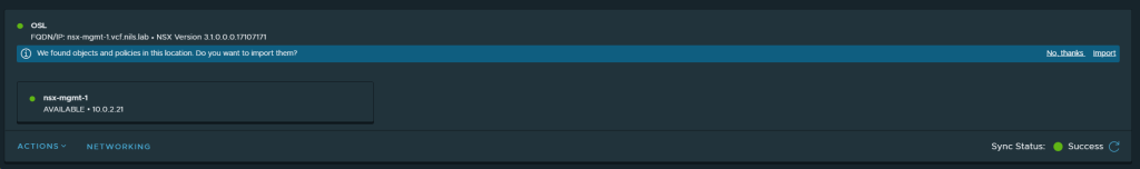 18. Imported the NSX-T Local Manager configuration in VCF Instance 2 (OSL) to the NSX-T Global Manager.