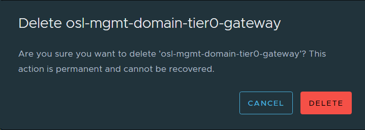 19. Deleted the Existing Tier-0 Gateway for the Management Domain in VCF Instance 2 (OSL). First I had to disconnect the Tier-1 Gateway from the Tier-0 Gateway.