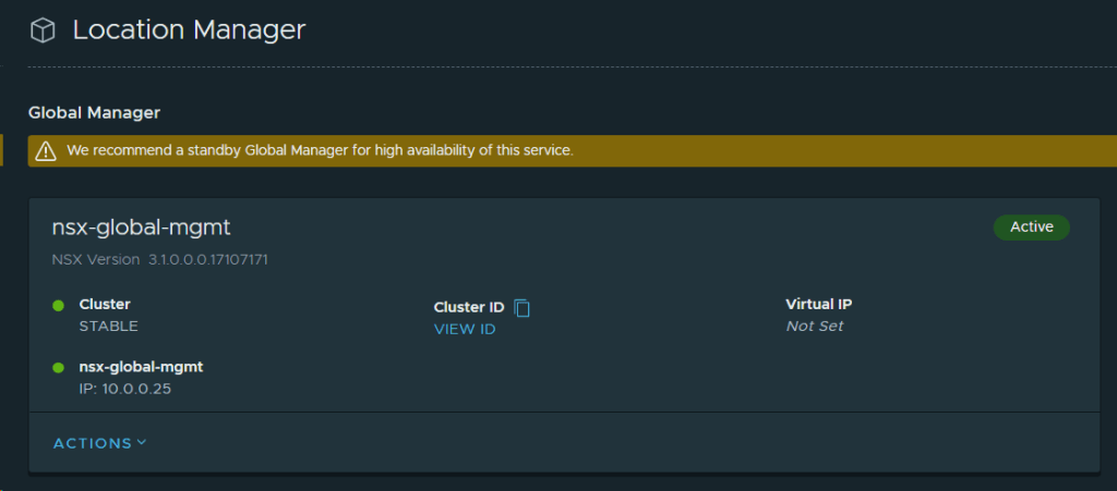 | nsx-global-mgmt.vcf.sddc.lab | NSX-T Global Manager | 1 | BGO | A |