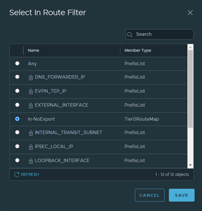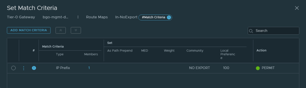 24. Created a Route Map for No Export Traffic in the Tier-0 Gateway.