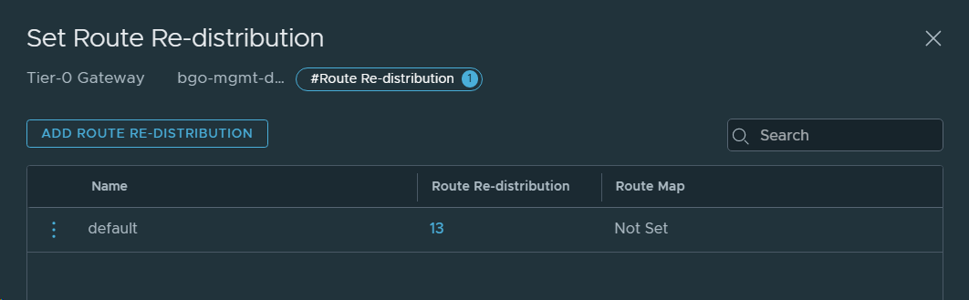 26. Configured route redistribution for VCF Instance 2 (OSL) on the Tier-0 Gateway.