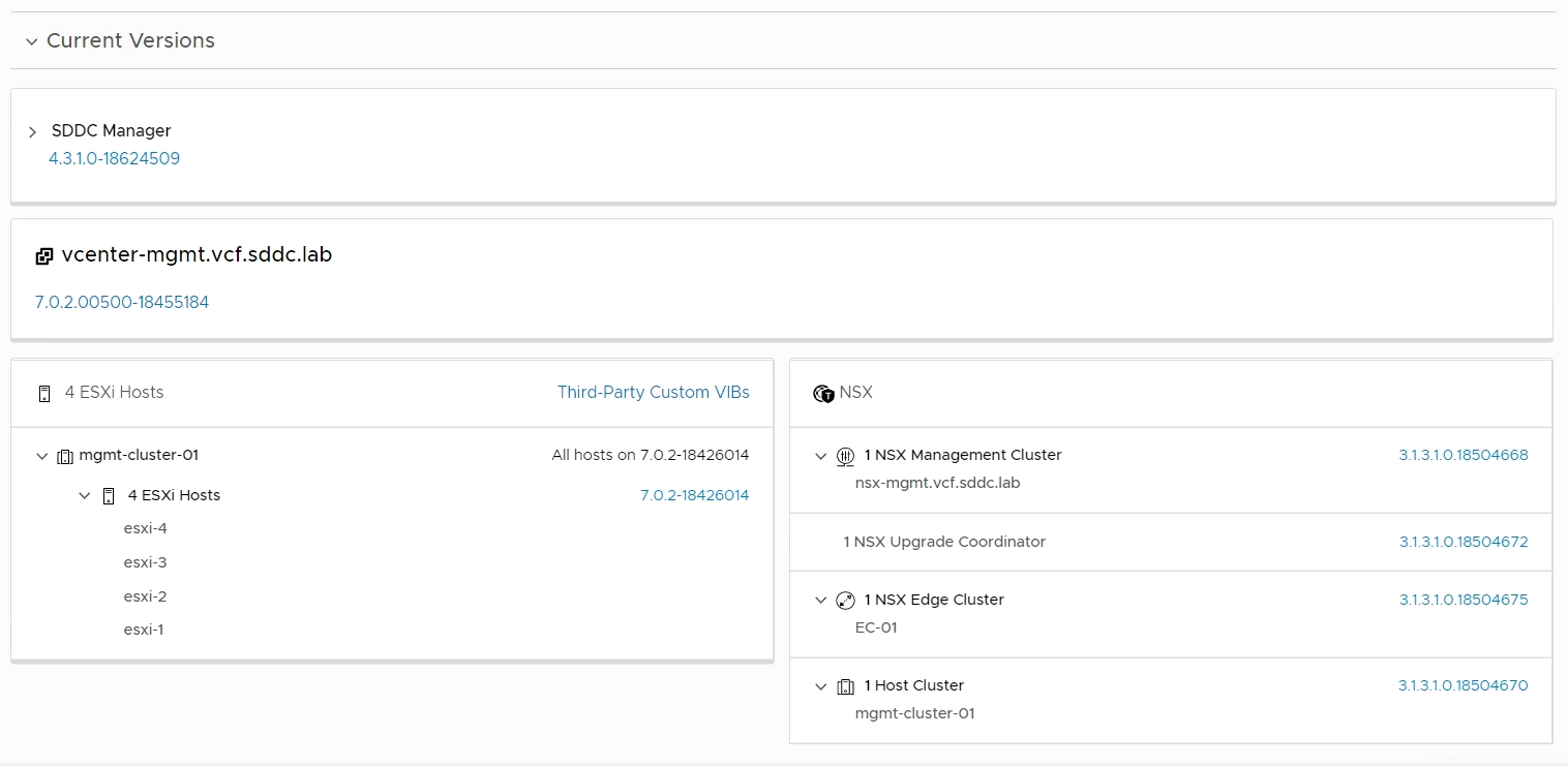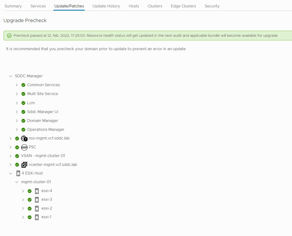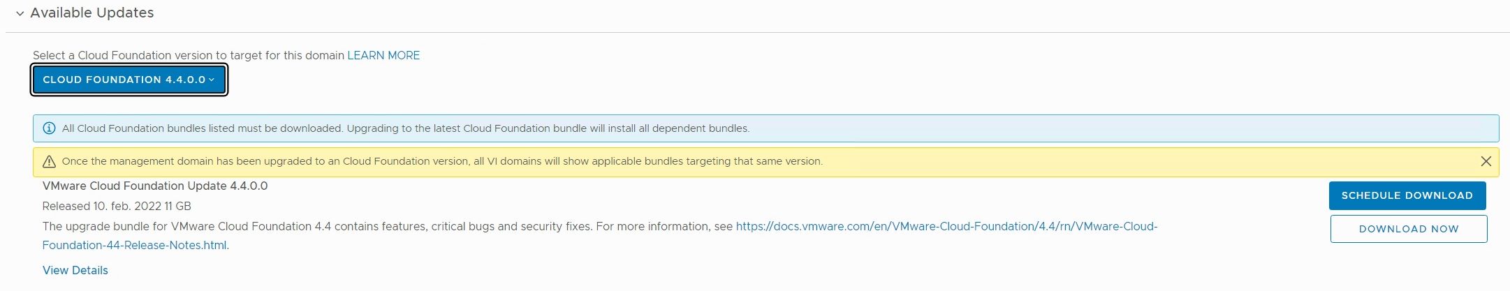 Going to my Management Workload Domain showed that the upgrade was available for download: