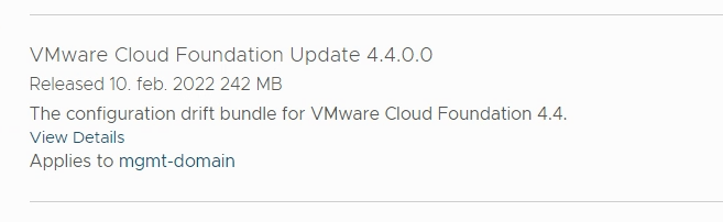 VMware Cloud Foundation 4.4 was just released so I wanted to check out what was new and upgrade my lab. Going into SDDC Manager and selecting Lifecycle Management and Release Versions gave me an overview of what is new: