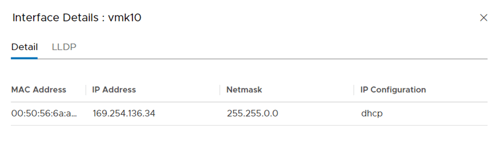 You can also see this in the vSphere Client by checking the IP configuration on vmk10 and vmk11.