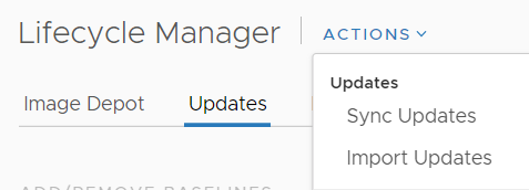 As mentioned before, I use the USB Network Native Driver for ESXi fling so I also wanted to figure out how to include this in my image prior to upgrading my ESXi hosts. This was done by going to Updates – Actions – Import Updates in Lifecycle Manager.