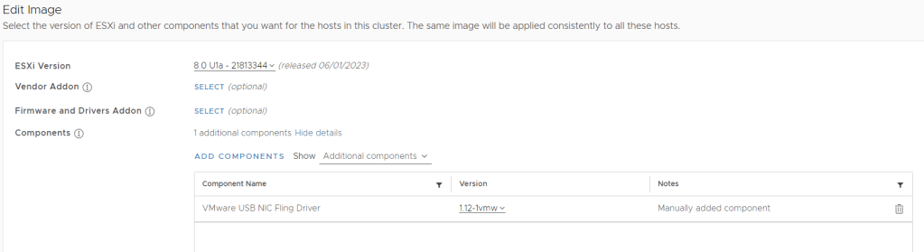 You can see from the image below that NSX will be included in the upgraded image. Vmware-vmkusb-nic-fling will not be included but that will be installed manually after the upgrade, however I will try to figure out how to add this to the image at a later time since I use the USB Network Native Driver for ESXi fling and it would be nice not having to install it manually each time I upgrade.