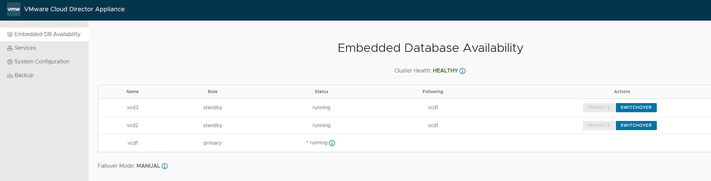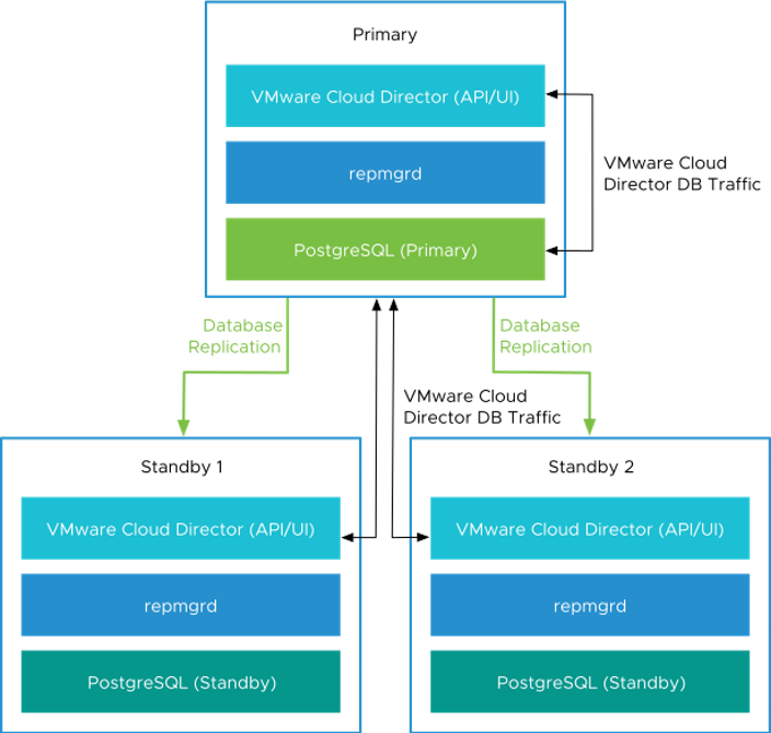 My intention was to deploy a VMware Cloud Director Appliance Database HA Cluster with one Primary cell and two Standby cells like this: