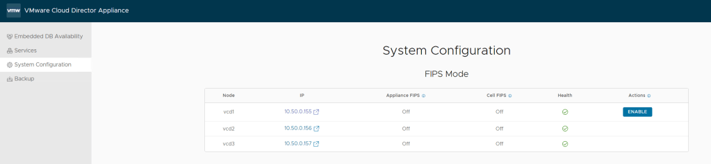 I also logged inn with root at https://vcd1.vcf.sddc.lab:5480/cluster to check the status of the appliances: