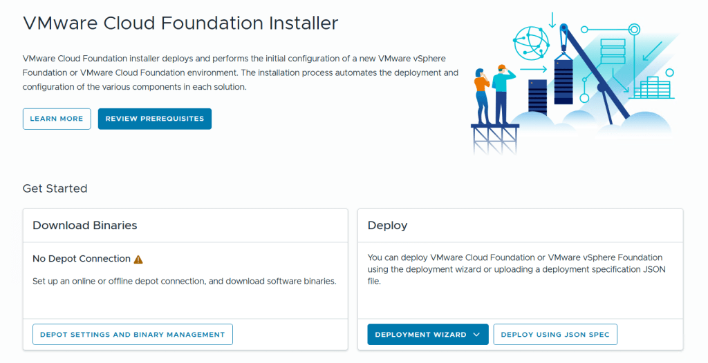 I started with deploying the VMware Cloud Foundation Installer on vSphere 8 and point a browser to its FQDN.