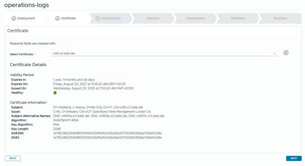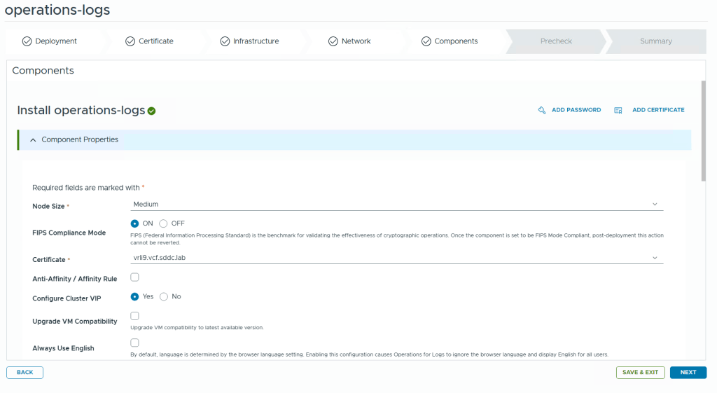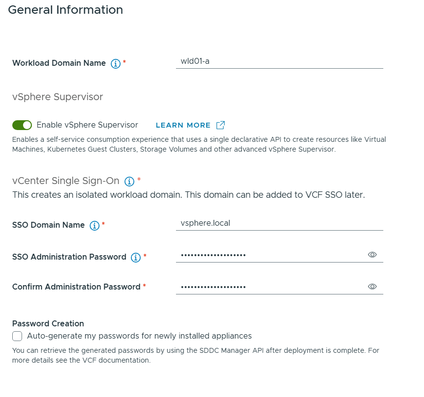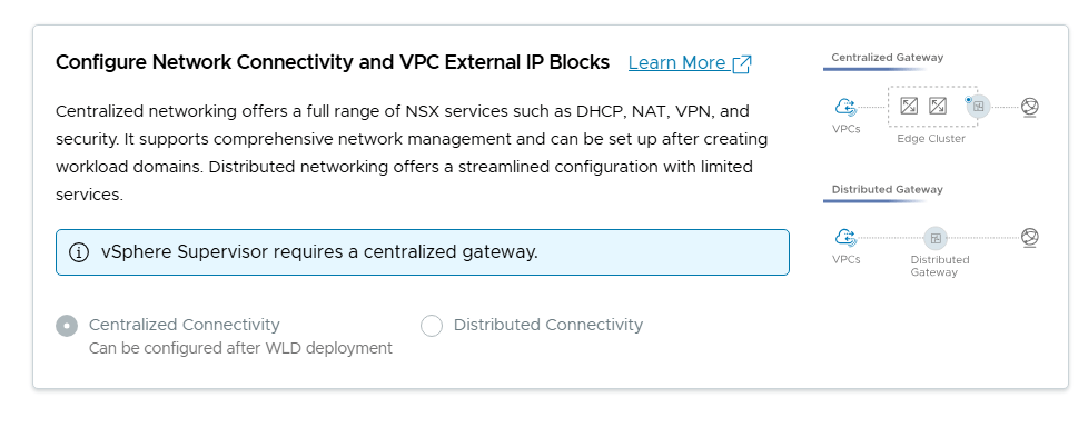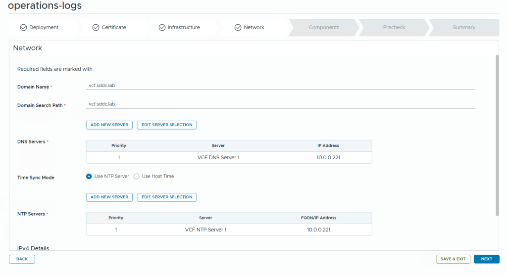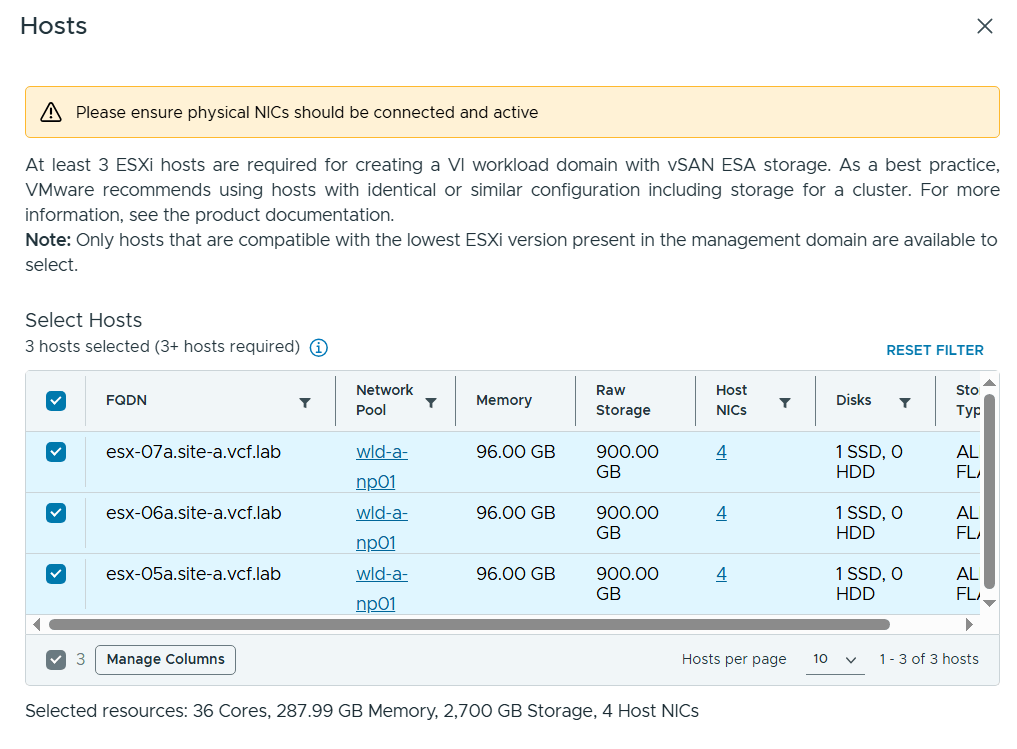 VLC lets you choose between three modes: Automated, Manual and Expansion Pack. Automated will deploy VCF including all dependencies, while Manual will deploy VCF, but you will have to provide DNS, DHCP, NTP and BGP. Expansion Pack can be used to add additional ESXi hosts to your deployment after you have installed VCF, for instance when you want to create more clusters or expand existing ones.