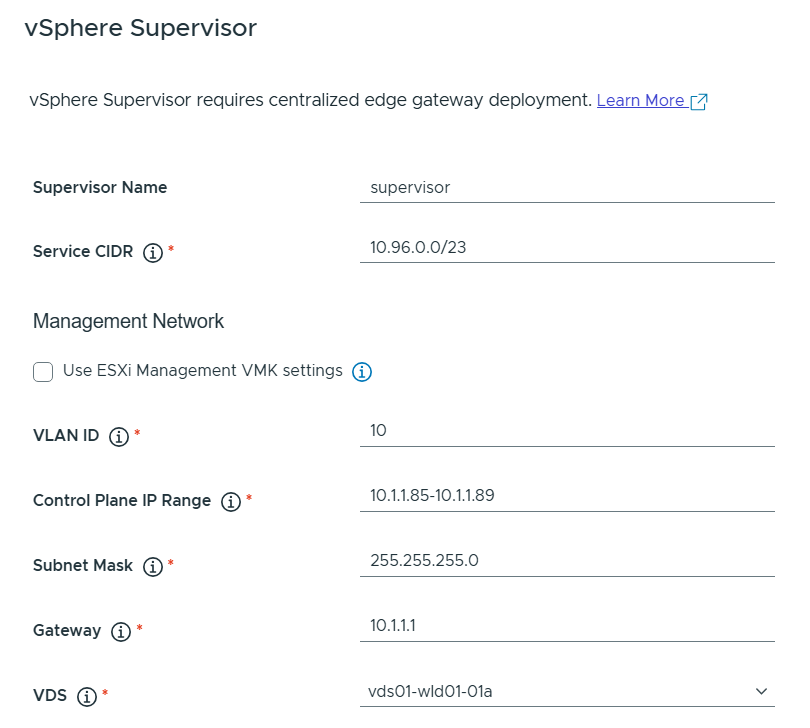 - Proper vSphere for Kubernetes licensing to support Workload Management