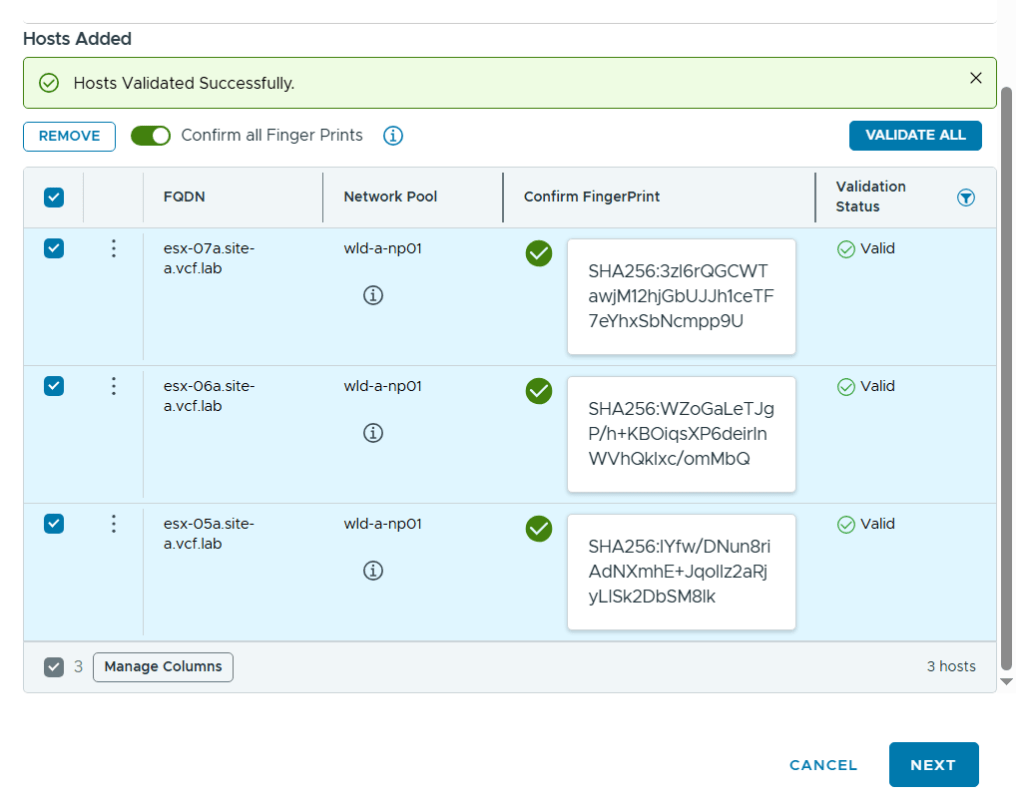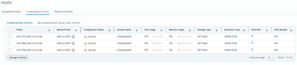 Adding ESXi hosts to existing clusters, or removing hosts, requires you to follow specific procedures. Again, stretched clusters must be expanded and shrunk using the VCF API.